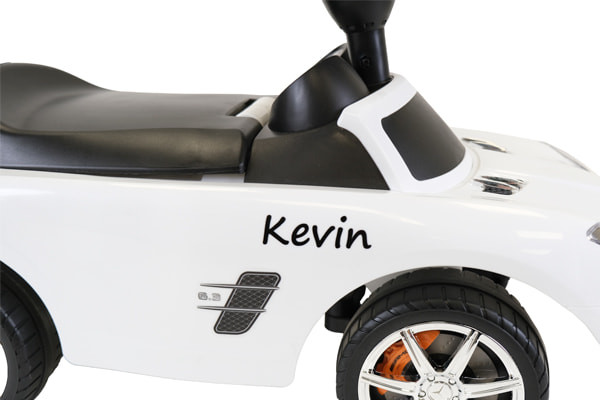 Hoe stoer is deze mini-kopie van de Mercedes Benz SLS AMG van Bandits & Angels! De zithoogte is 23 centimeter en eronder is opbergruimte aanwezig. De kiepbeveiliging aan de achterkant maakt de loopwagen heel stabiel en veilig. Op het stuur kunnen diverse muziekjes worden afgespeeld en er is een echt werkende claxon. Geschikt voor de kleine racemonsters vanaf 1 jaar. Optioneel: bestel een stickerset met eigen naam mee.