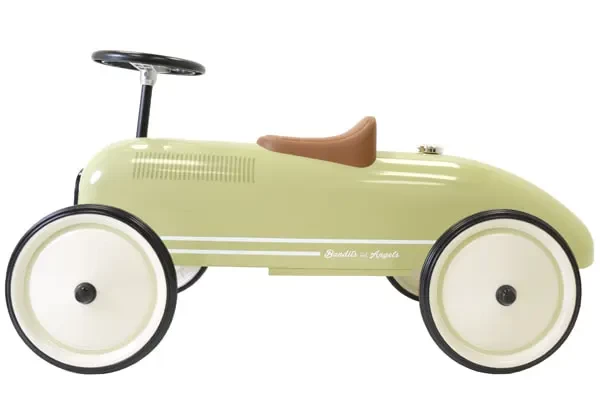Een prachtige metalen oldtimer in de kleur retro roze. Deze loopauto is geschikt voor kinderen vanaf 1 jaar. Maar ook al leuk om als kraamcadeau te geven. Dit staat toch fantastisch op de babykamer? Het bruine zadel heeft een zithoogte van 28 cm. De vier metalen wielen zijn 20 cm groot en zijn omrand met rubber. Hierdoor kan er zowel binnen als buiten probleemloos op worden gereden. Er zit een mooie grill op en een leuk tankdopje voor de sier. Optioneel: bestel een naamsticker mee.