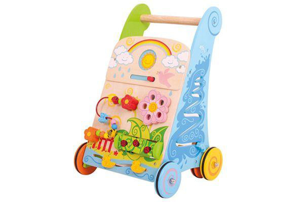 Marine activity walker van Bigjigs. Met deze loopwagen leert u lopen en kunt u zich uren vermaken. De activity walker is vrolijk gekleurd en bevat leuke spelletjes. Naast de vaste spelletjes worden er ook 3 losse vormblokjes meegeleverd die door de zijkant geplaatst kunnen worden. Geschikt voor kids vanaf 1 jaar.